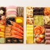 【和風】田作り/紅白かまぼこ/椎茸旨煮/紅白梅型羊羹/伊達巻/りんごきんとん(栗甘露煮)/黒豆煮/いくら醤油漬/数の子醤油漬け/ボイル海老/鶏松風焼き/あんず煮/銀鱈塩麹焼き/鮭昆布巻/よもぎ麩含め煮/なます